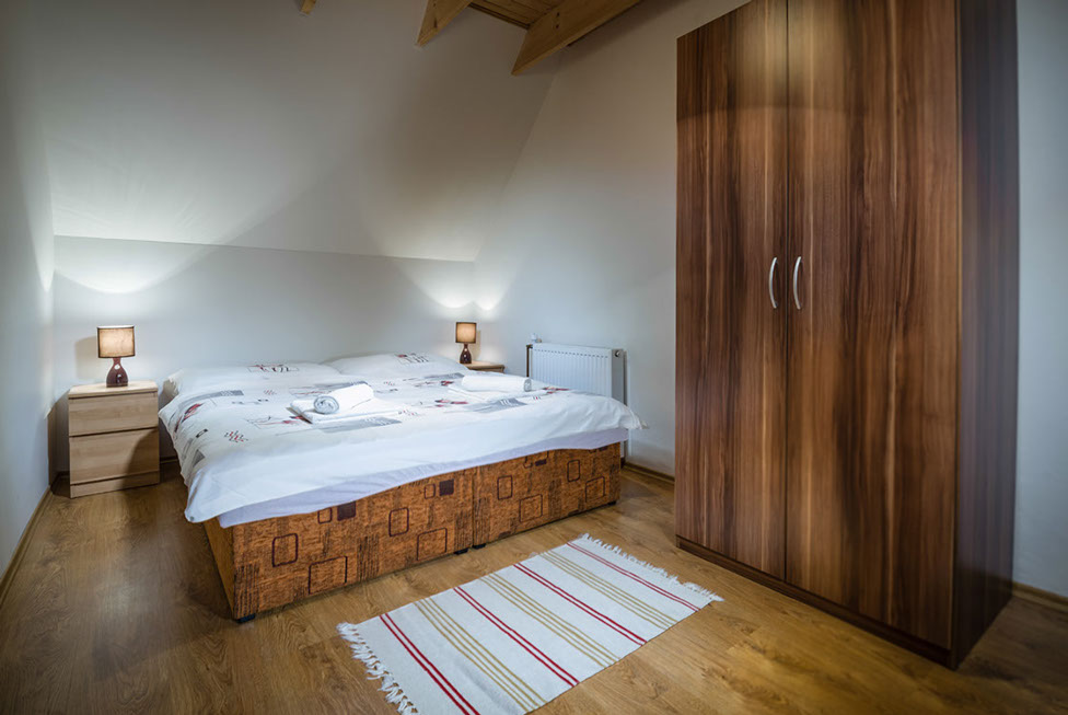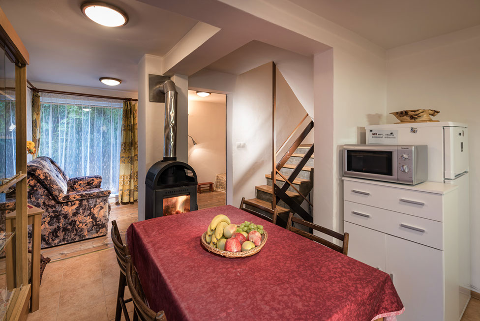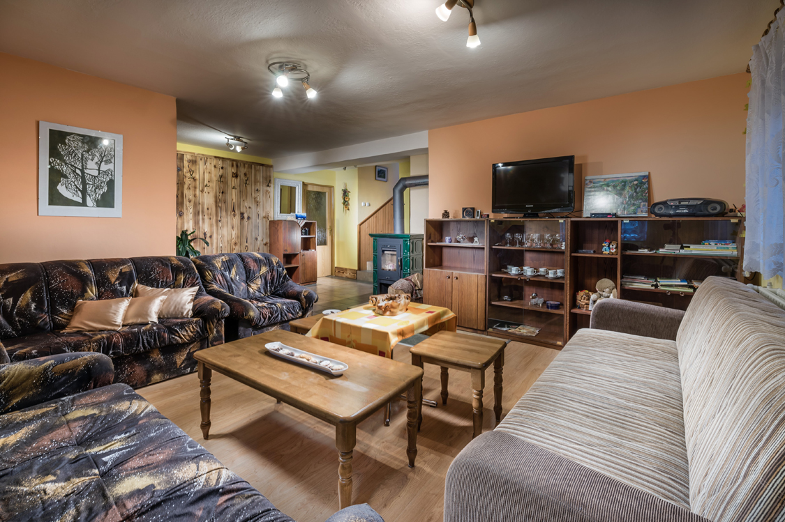 On the ground floor of a large house there is a large kitchen for family rooms, a hall with a fireplace, TV / SAT and a radio for a pleasant sitting. The ground floor also has a bathroom and two toilets and a washing machine. You also have unlimited internet access and WIFI with coverage of the entire building. You can store your skis in the warehouse with ski and bicycle stands. Heating and hot water is provided centrally by a gas boiler.